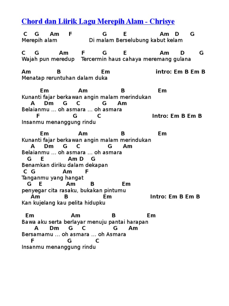 Kunci Gitar Chord Dan Lirik Lagu Bagaikan Langit Potret Oh Asmara Yang Terindah Mewarnai Bumi Tribun Wow